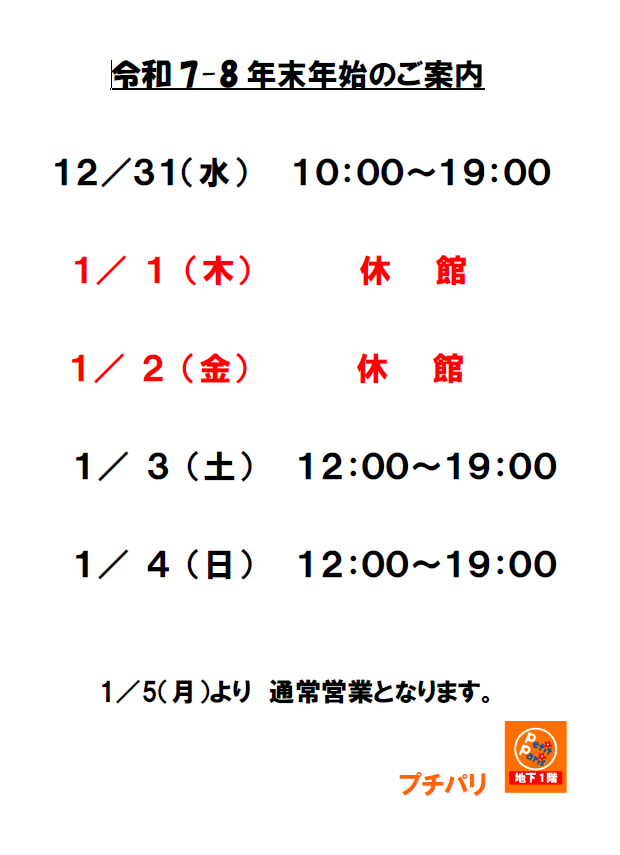 HOME > イベント&ニュース > ダンボールイベント > イベント&ニュース ダンボールイベント 令和7-8年度(2025-2026)年末年始 営業時間のお知らせ 2025/11/27 令和8 -イベント&ニュース, ダンボールイベント